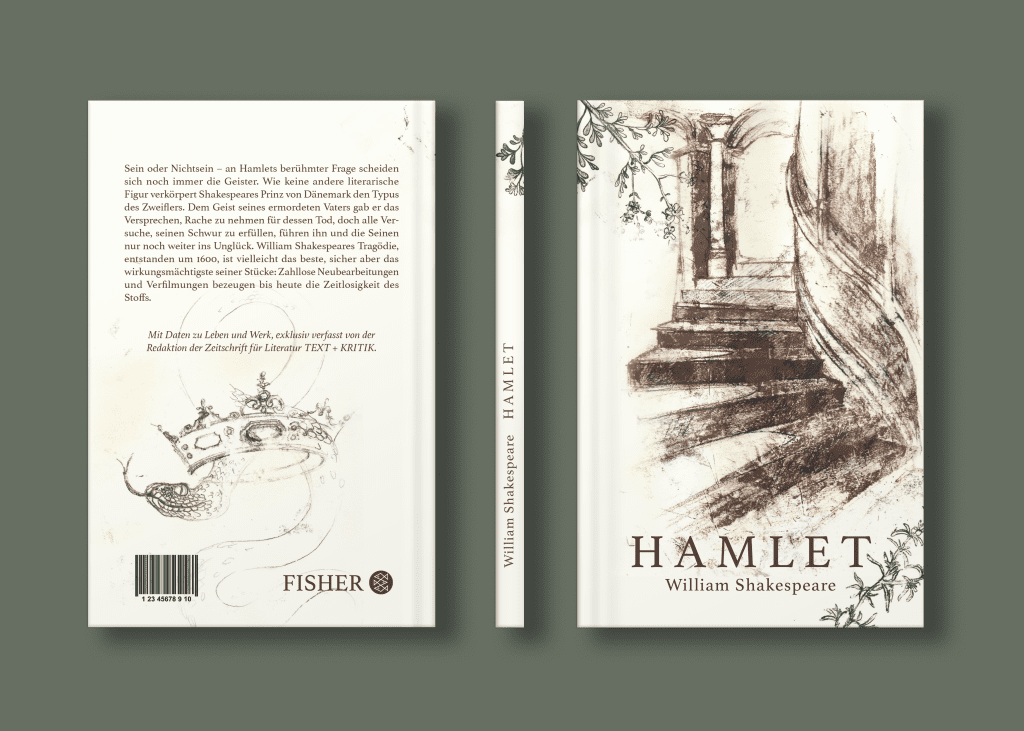 HAMLET book cover / the illustrations were made using monotype printmaking technique, scanned and arranged in photoshop, text and elements were placed using indesign / 2024